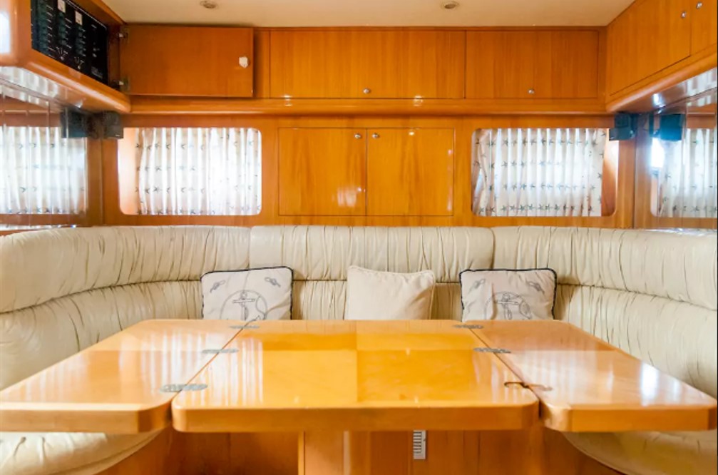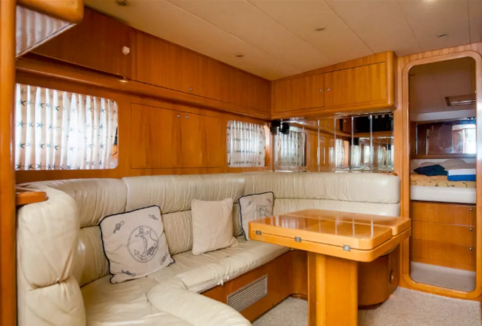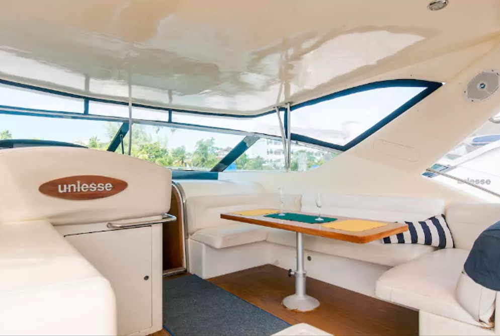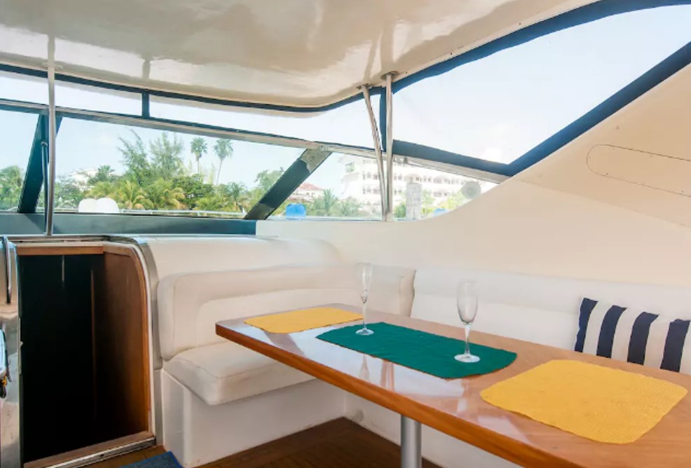 En tours en Helicóptero en Cancún le presentamos el mejor yate de pesca deportiva en Cancún, el Dolphin de 48 pies. Es un yate de lujo con el equipo de pesca más completo, cuenta con out, down riggers, silla y caña de pesca, 2 mega gieleras, equipo de sonido, dos camarotes y dos baños completos, aire acondicionado, un comedor/sala interior y un coemdor de media luna exterior bajo sombra, una parrilla al aire libre, para los amantes de la pesca del día y lo mejor, cuenta con una silla de pesca.